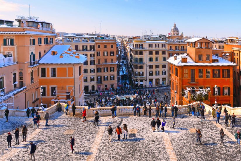 Sastanak putnika s Palminim predstavnikom u Zračnoj luci Zagreb dva sata prije polijetanja zrakoplova. Prijava na let i polijetanje zrakoplova za Rim u 14.35 sati na liniji OU380 (Croatia Airlines) s međuslijetanjem u Split u 15.25, gdje se priključuju i ostali putnici. Nastavak leta za Rim u 16.00 s očekivanim dolaskom u 17.10 sati. Transfer do hotela. Smještaj u sobe i kraći odmor. Odlazak s voditeljem putovanja javnim prijevozom do trga Piazza di Spagna, popularnog sastajališta Rimljana uz barokne stepenice i uličice pune trgovina i slatkih kavana, ovjekovječene u mnogim poznatim filmovima i poprište rimskog godišnjeg modnog showa. Ispod trga nalazi se jedna od najpoznatijih modnih ulica na svijetu, Via Condotti, gdje su smješteni dućani najpoznatijih modnih dizajnera i dizajnera nakita, a šetnju ćemo završiti kod Fontane di Trevi, najslavnije rimske fontane. Slobodno vrijeme za večeru u nekom od obližnjih restorana. Povratak do hotela i noćenje.