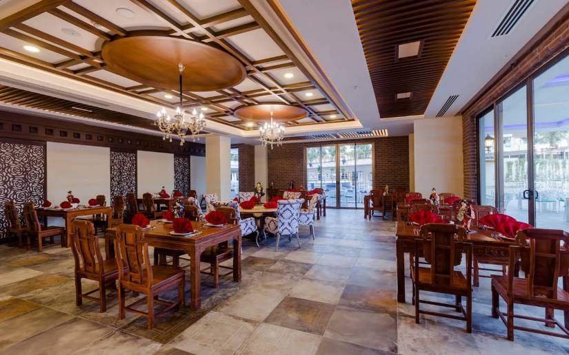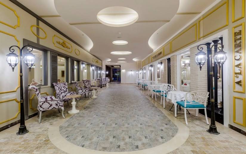 Usluga: All inclusive - buffet obroci u glavnom hotelskom restoranu; doručak (07:00-10:00), kasni doručak (10:00-10:30), ručak (12:30-14:00) i večera (19:00-21:00), talijanski a la carte restoran (prethodna rezervacija, doplata), slastičarna (10:30-23:00). Odabrana lokalna alkoholna i bezalkoholna pića; pool bar i lobby bar (10:00-23:00), disco bar (23:30-01:30), beach bar (10:00-17:00) te u glavnom restoranu tijekom svih obroka. Bar sa grickalicama (11.00-16.30). Točan ultra all inclusive program dobit ćete po dolasku u hotel. Važno: gosti restorana moraju se pridržavati pravila odijevanja.